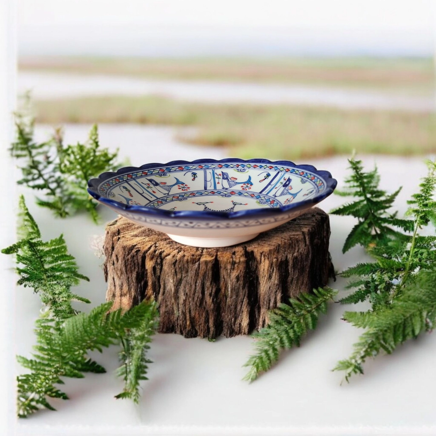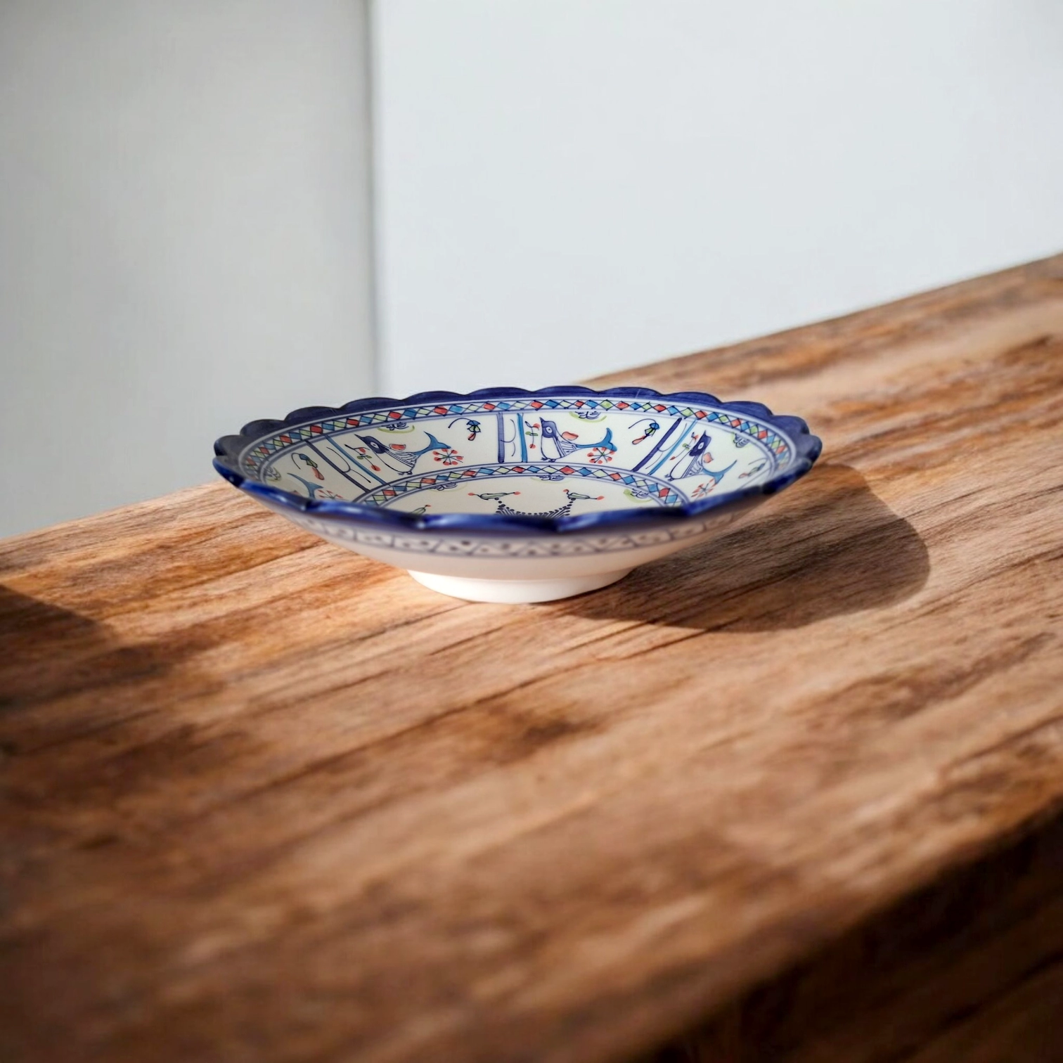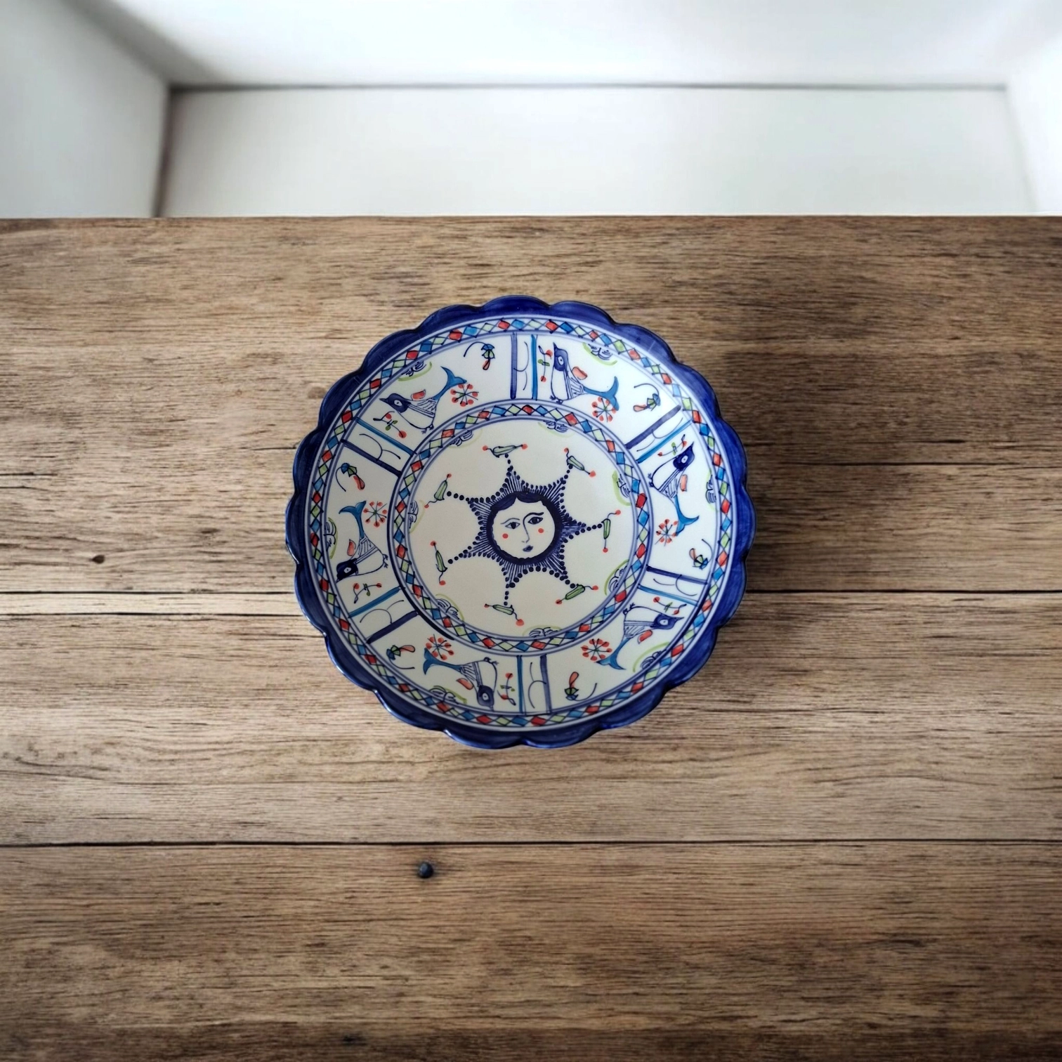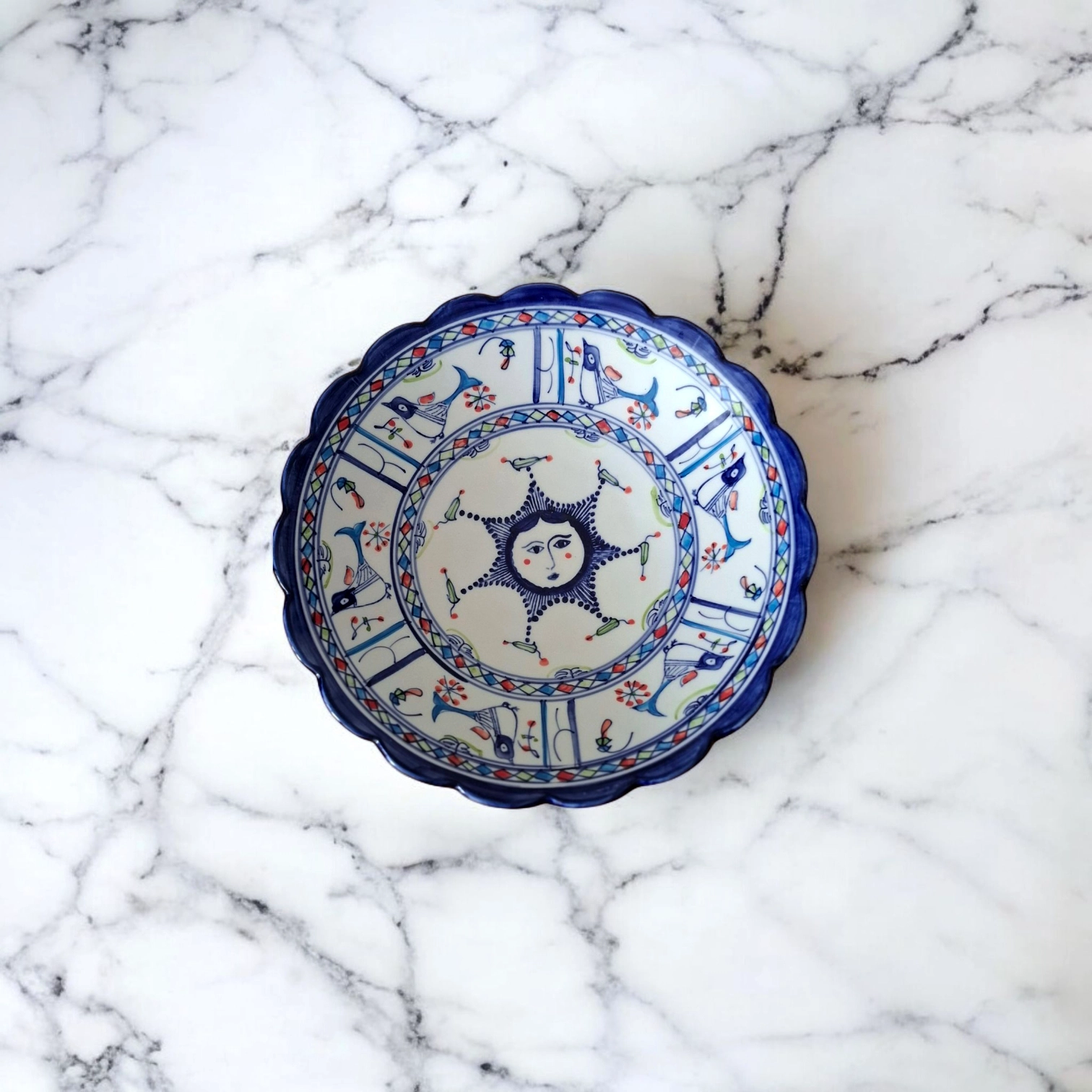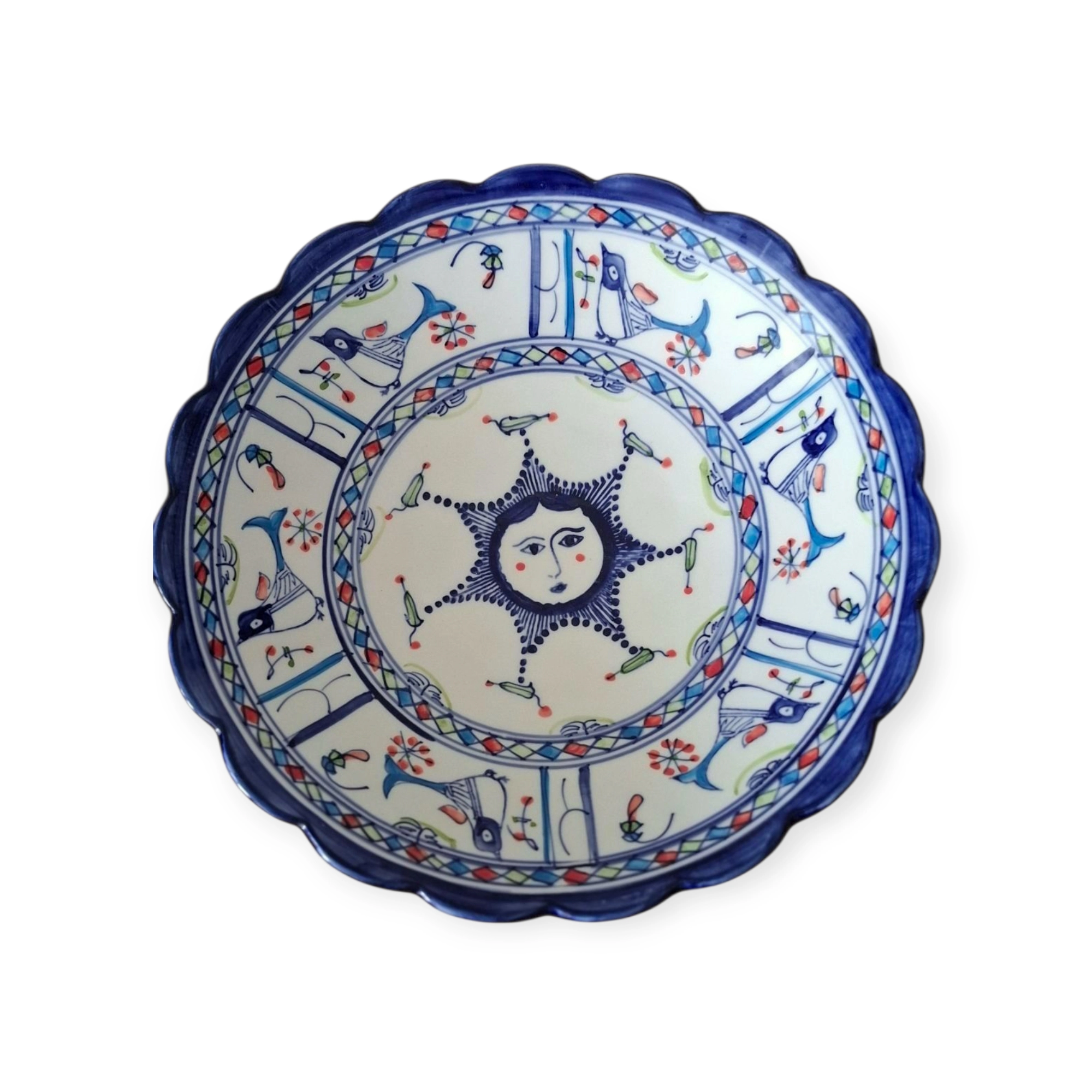 کاسه میوه خوری ستنی با نقاشی های مرغ و خورشید که نماد اصالت شهر تاریخی یزد را به رخ می کشد.